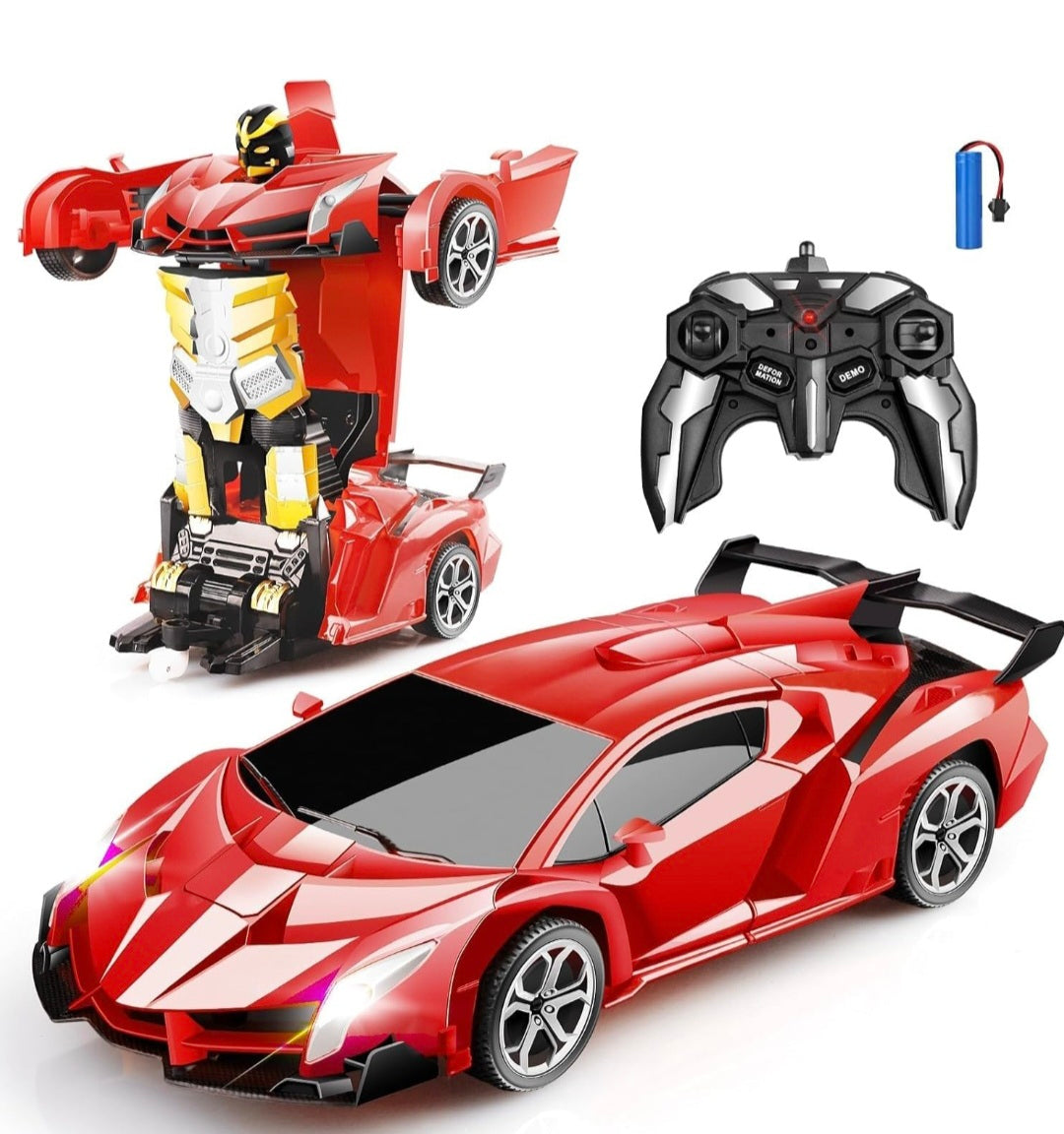 ONE-KEY AUTOMATIC TRANSFORMATION: This RC transforming car can easily and smoothly shift from a vehicle into a robot with just a gentle press of a button. Children can effortlessly switch between various forms, enhancing their gaming experience